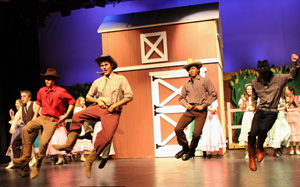 Francesco, center, as Ike Skidmore, the friendly farmer in the Rodgers and Hammerstein musical Oklahoma! Photo courtesy of Laura Bamford.